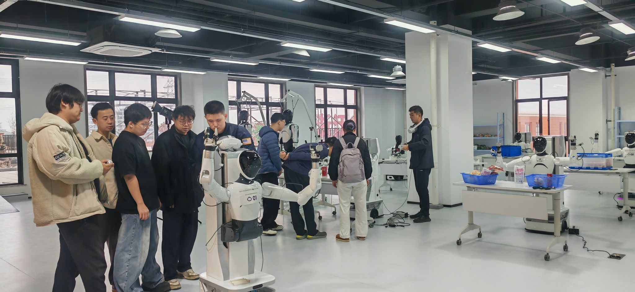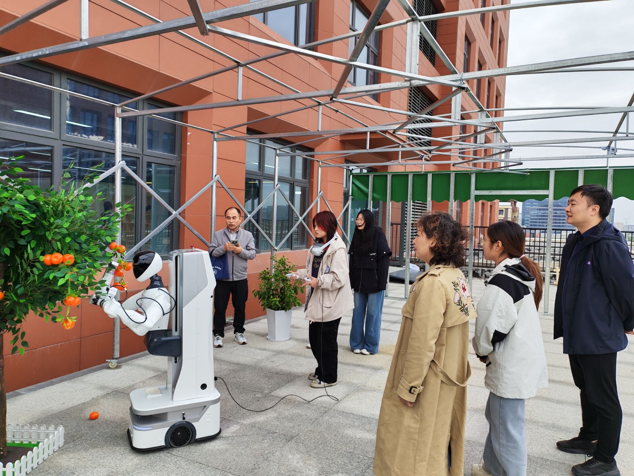 作为省校共建的新型高端科研机构,柔电院深度整合清华大学科研资源与浙江省产业需求,在技术研发、成果转化、人才培养等方面形成显著优势。目前,我院已与其构建起深度合作关系,其已成为学院重要的实践教学基地。朱蓉一行首先走进柔性感知与具身智能数据采集训练中心,详细了解该中心在农业、工业、零售、家居等多场景的技术应用成果,认真听取工作人员关于实训平台建设、实习岗位设置及学生培养方案的介绍,并了解实习生参与项目的具体情况。