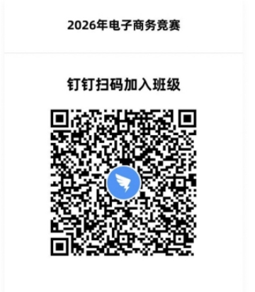 请有意参加竞赛的同学加入2026年电子商务竞赛群(钉钉二维码如下),也可直接联系王老师:15858354631各种电子商务相关通知均会在南湖电子商务竞赛群发布。