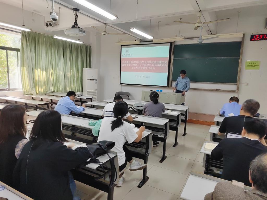 2023年10月26日下午13:30,信息工程学院教工第二党支部全体党员教师在教二B213组织开展“学习贯彻习近平新时代中国特色社会主义思想”主题党日活动,由支部书记杨宇博主持。