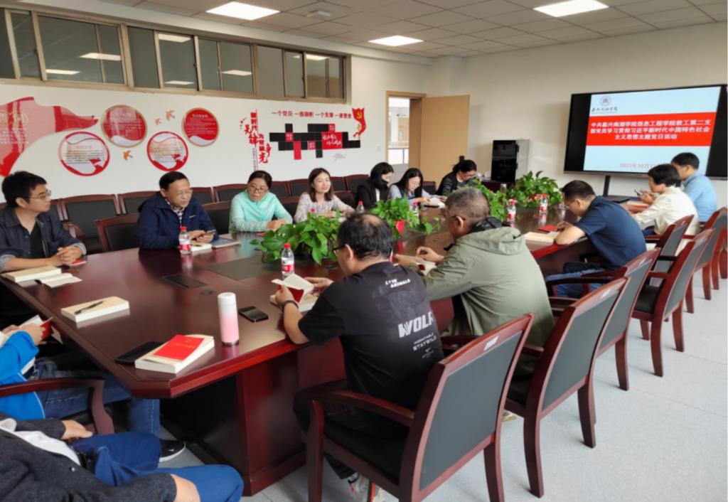 2023年10月12日下午13:00,信息工程学院教工第二党支部全体党员教师在8314会议室组织开展“学用新思想、建功新时代”主题党日活动,由支部书记杨宇博主持。