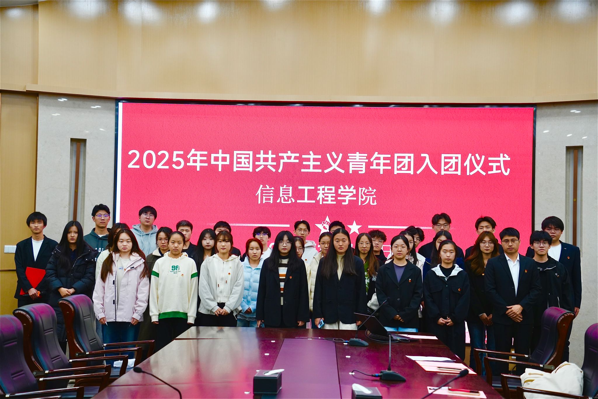 为进一步加强共青团组织建设,引导青年学生坚定理想信念,传承红色基因。近日,嘉兴南湖学院信息工程学院于11月24日晚在第六报告厅隆重举行新团员入团仪式。学院团委书记胡芳敏老师、老团员代表及本期26名新团员共同参与,见证了这个青春奋进时刻。
